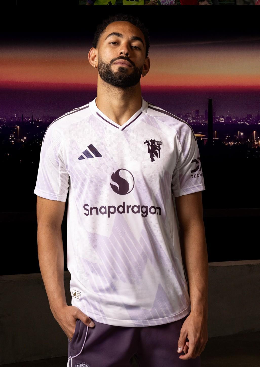 《曼彻斯特晚报》指出,曼联将在斯德哥尔摩对阵利兹联的比赛中首次穿上他们的新款客场球衣。这套球衣主要以白色和浅紫色为主,丁香紫与淡紫层叠晕染铺陈全身,营造轻盈而鲜明的视觉冲击;白色V领点缀紫色条纹,双肩同色三条纹贯穿而下,将复古与未来感无缝衔接。